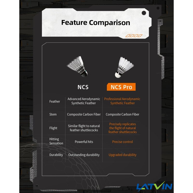 Professionaalsed testid on näidanud, et NCS talub üle 100 keskmise ja pika distantsi löögi, mis tõestab, et selle vastupidavus ületab tüüpiliste sulgedega sulgpallide oma. Sarnased tooted